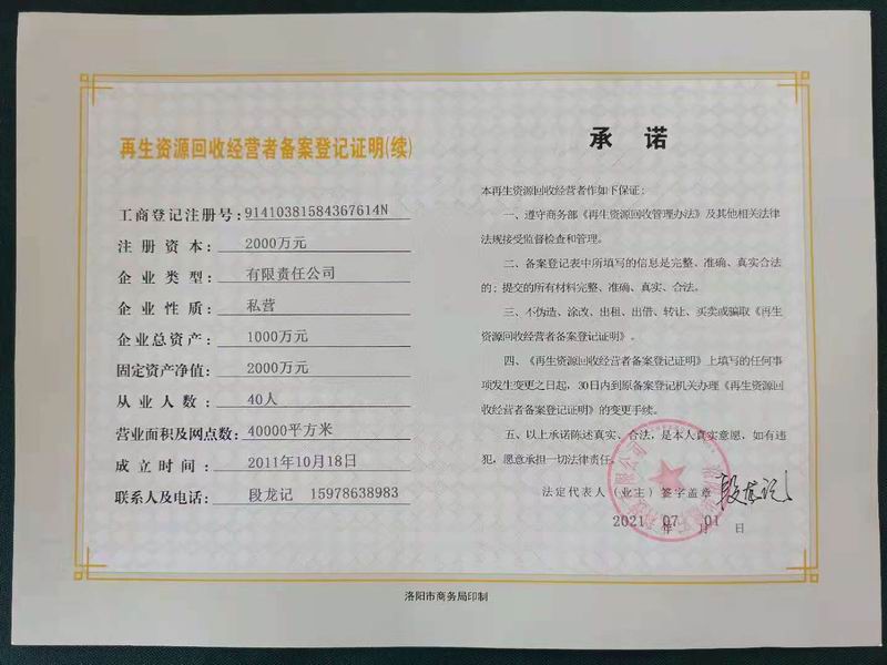 再生資源回收經(jīng)營(yíng)證明